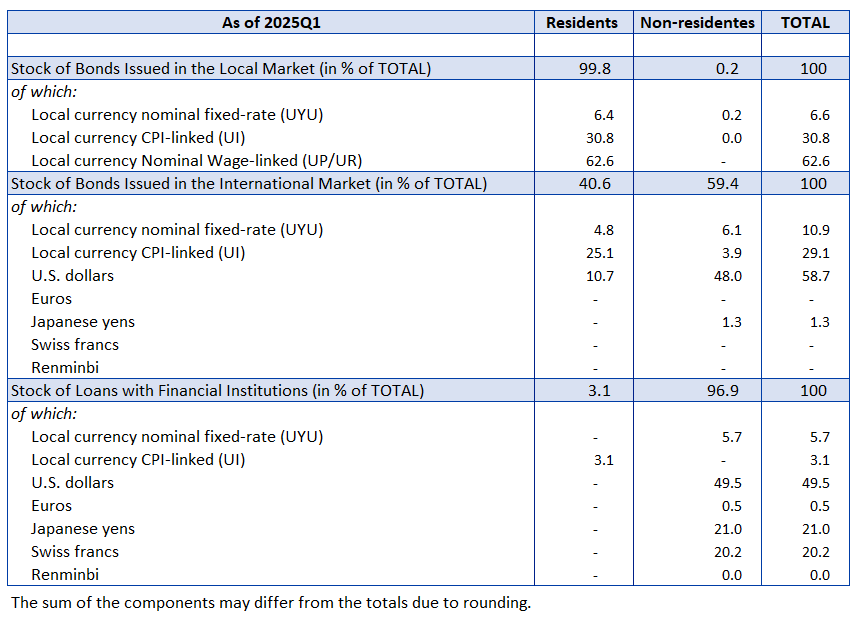 The following table shows the distribution of Central Government debt issued/contracted under local and international jurisdiction between residents and non-residents.