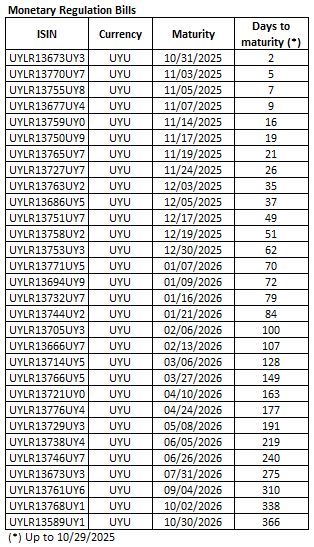 October 24th, 2025. The Republic announces the elegible securities for Tuesday's CPI-linked Treasury Notes auction.