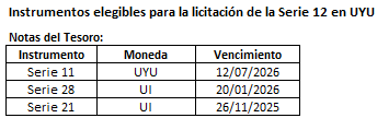 - Instrumentos elegibles para la licitación de la Serie 12 en Pesos Nominales (UYU)