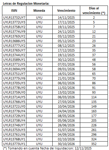 Instrumentos elegibles para la licitación de la Serie 12 en Pesos Nominales (UYU)