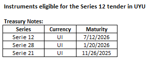 Elegible securities for Nominal Fixed-Rate Pesos Treasury Notes Series 12