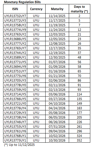 November 7th, 2025. The Republic announces the elegible securities for Tuesday's Nominal Fixed-Rate Pesos Treasury Notes auction.