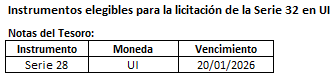 - Instrumentos elegibles para la licitación de la Serie 32 en Unidades Indexadas (UI)