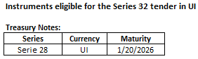 Elegible securities for CPI-linked Treasury Notes Series 32 auction