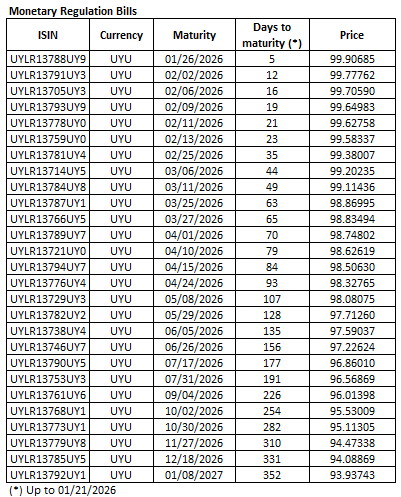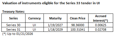 January 20th, 2026. The Republic announces the prices to be paid for the elegible securities in today´s CPI-linked Treasury Notes auction.