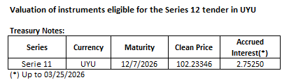 - Elegible securities' prices for Nominal Fixed-Rate Pesos Treasury Notes Series 12
